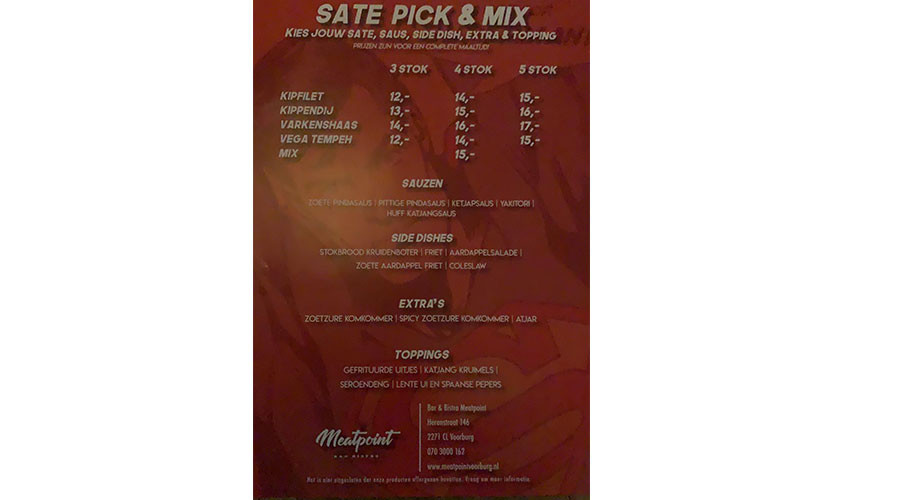 Restaurant Meatpoint in de Herenstraat in Voorburg is in deze periode op een bezorgingsdienst overgestapt. "Vanaf nu kun je lekker op de bank blijven zitten en toch genieten van de lekkerste gerechten van Meatpoint", aldus het management. "Op woensdag tot en met zondag kun je tussen 17.00 uur en 21.00 uur bestellen van onderstaand bezorgmenu. En extra leuk, wanneer je bij Meatpoint een gerecht bestelt, ding je gelijk mee voor een diner voor twee personen in het restaurant, te verzilveren zodra we weer open zijn. Bel 070 3000 162 om je bestelling te plaatsen".