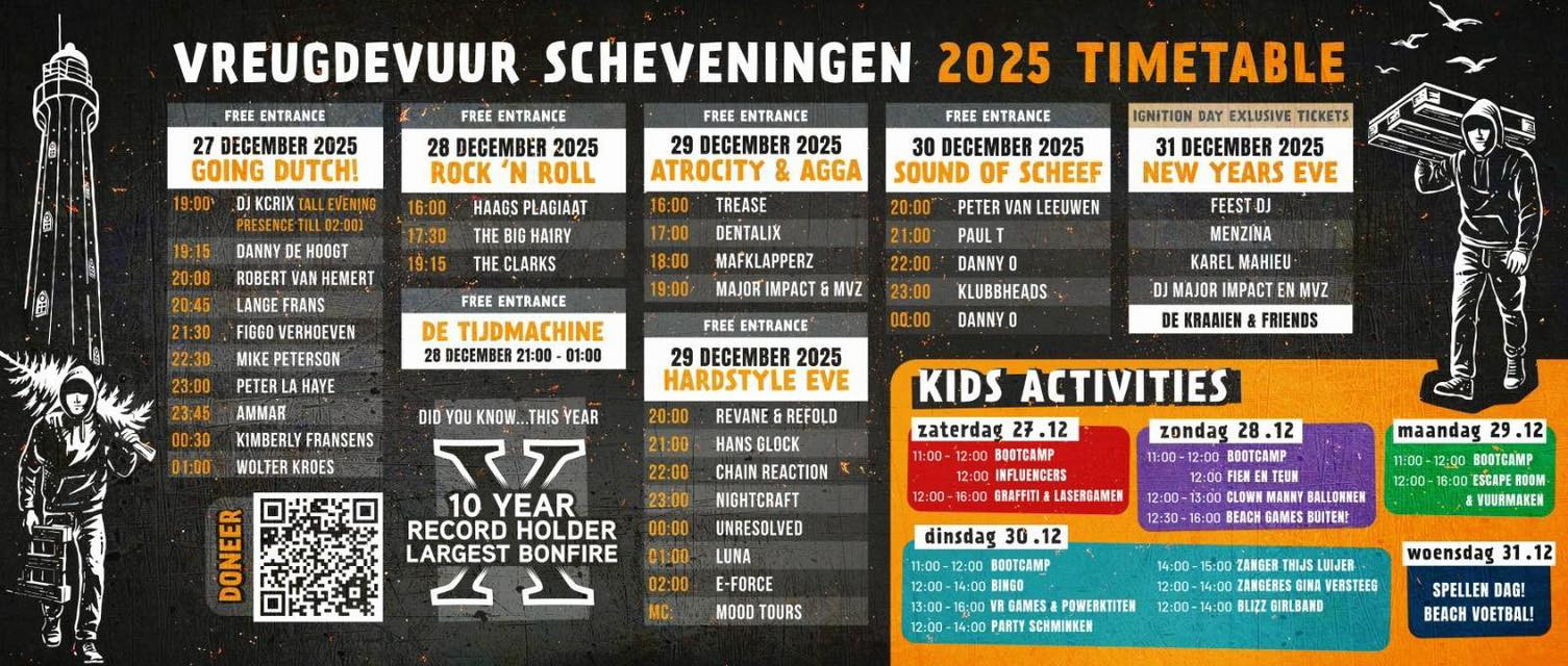 De opbouw van de vuurstapel start op zaterdag 27 december. In de avond zijn er dan gratis optredens van onder meer Lange Frans, Mike Peterson en Wolter Kroes. In de dagen erna zijn er 's avonds op de locatie onder meer gratis optredens van The Clarks, E-Force en Peter van Leeuwen. En vanaf zaterdag 27 december zijn er ook dagelijks kinderactiviteiten, zoals een bootcamp, bingo, schminken en een optreden van de Blizz Girlband.