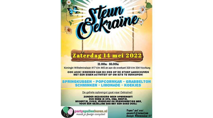 In de Koningin Wilhleminalaan wordt op zaterdag 14 mei een event gehouden waarvan de opbrengst naar de slachtoffers van de Oekraïnegaat.