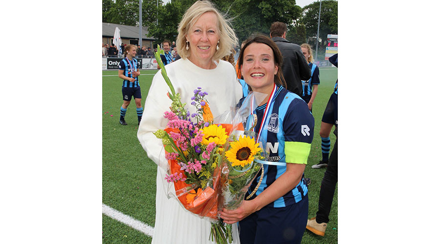 Wethouder van sport Astrid van Eekelen kwam speciaal langs om de meiden aan te moedigen en om na afloop een bos bloemen te overhandigen aan de aanvoerdster Ginger.