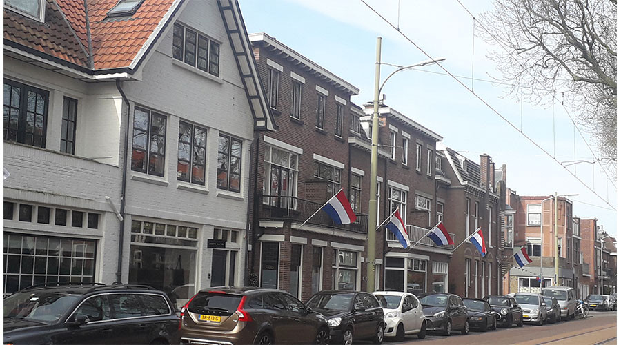 Buurtbewoners houden een eerbetoon aan de nog altijd op zich zelfstandig wonende Voorburger door de vlag uit te hangen. Het bijzondere is dat zijn kleindochter Lisa de Haas vandaag ook twaalf jaar is geworden.