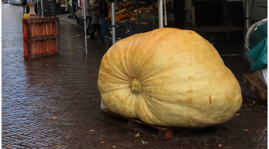 De enorme meloen in de Herenstraat. (foto Ap de Heus).