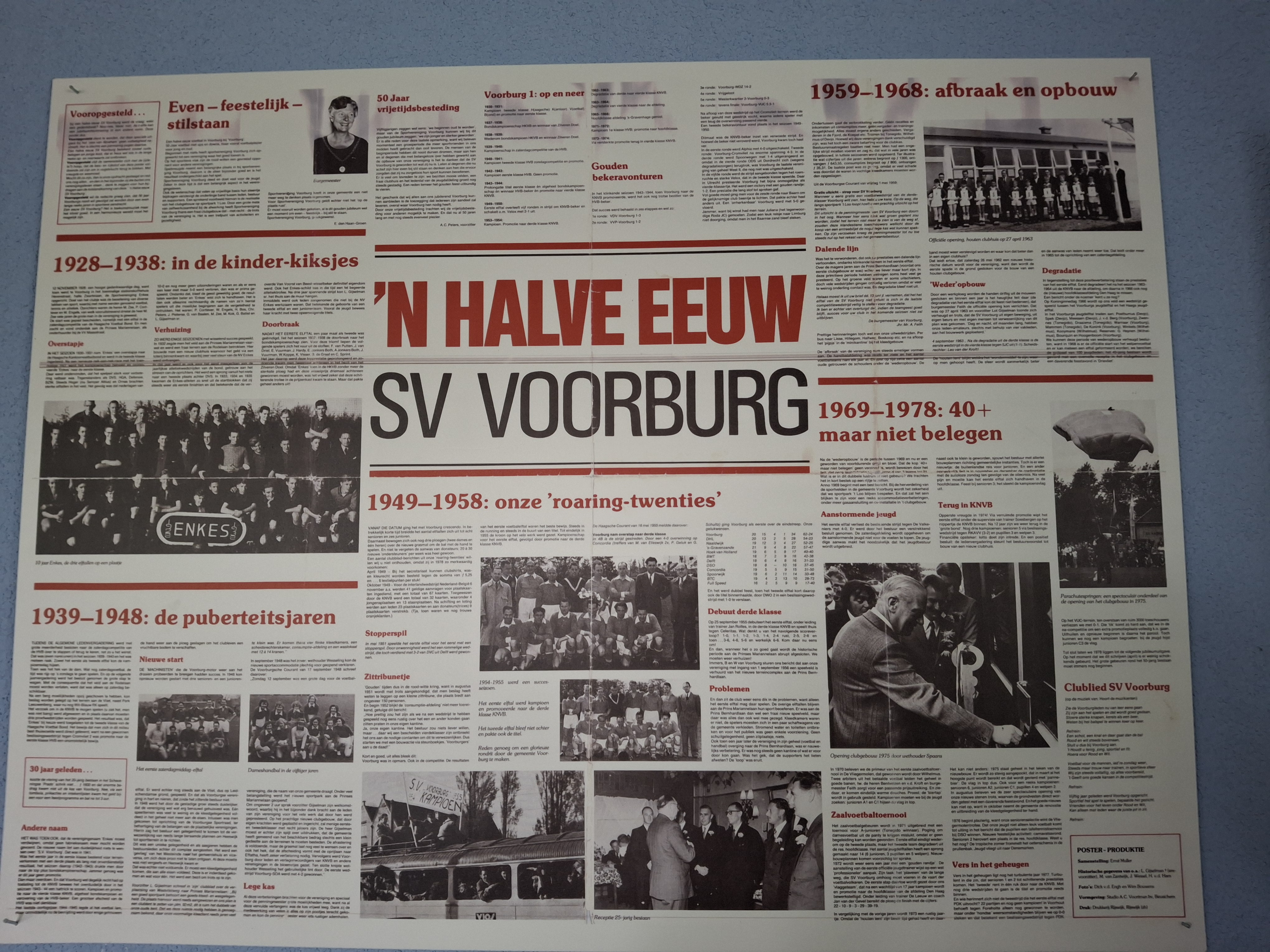 Tijdens alle euforie werd er gisteren in de bestuurskamer van Forum Sport ook gesproken over vroegere tijden in het Voorburgse voetbal. Zo keken belangstellenden naar de foto aan de muur van het toenmalige sv Voorburg dat in de jaren negentig furore maakte met spelers als Gerard Schultz, Paul van Melzen en de Zwarte Panter, Boro Brandl, in het doel.